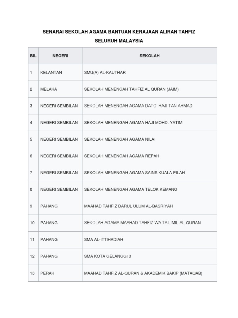 senarai sekolah agama bantuan kerajaan
